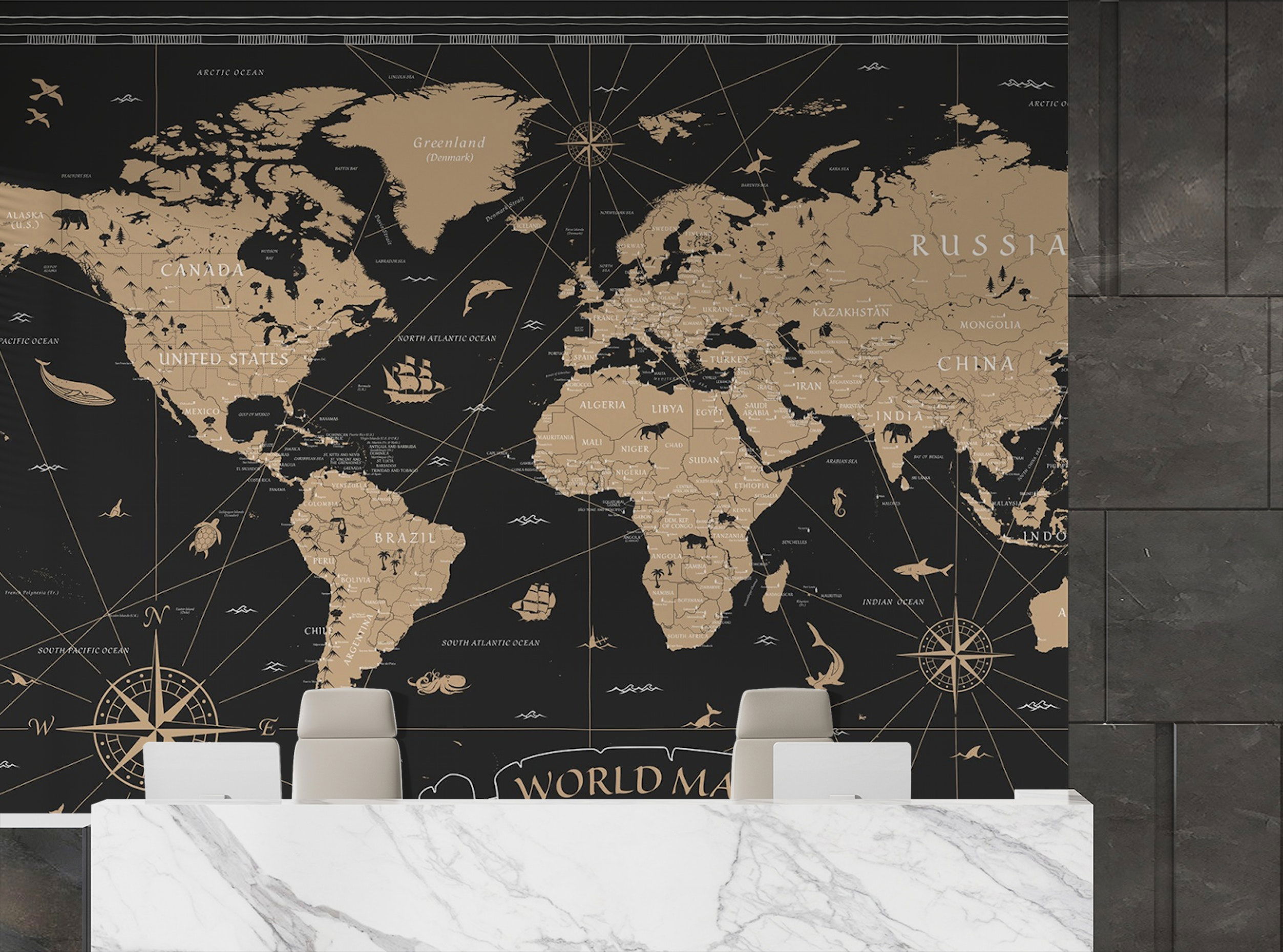 Many businesses and entrepreneurs operate on a global scale, and their decor should reflect that expansive mindset. Installing a world map wallpaper is a classic way to inspire a broad perspective and remind yourself of the reach of your projects. These designs range from vintage-style cartography to modern minimalist outlines. Beyond its aesthetic appeal, a map mural serves as a functional tool for visualizing logistics or simply as a reminder of future travel goals, fostering a sense of ambition and worldliness within the confines of the office.