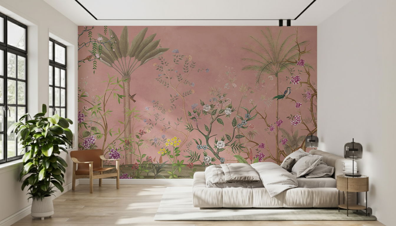 Patterns that feature delicate, sprawling motifs, rather than dense blocks of color, contribute to an open feel. Traditional styles, like chinoiserie wallpaper, often use light backgrounds and fluid, winding imagery. These designs introduce movement across the wall without demanding heavy visual weight. The un-cramped space between the design elements prevents the surface from feeling too busy or closing in on the viewer.
